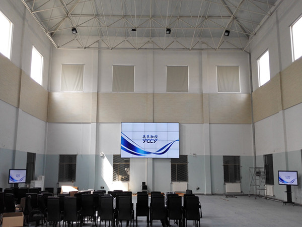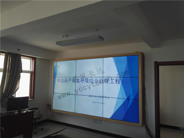 本次靖邊縣政府采購中心采用我公司3*3塊46寸液晶拼接,亮度為500cd/㎡,拼縫3.5mm,壽命長達6萬小時以上。本方案設計為壁掛式拼接,定制五金支架及不銹鋼...