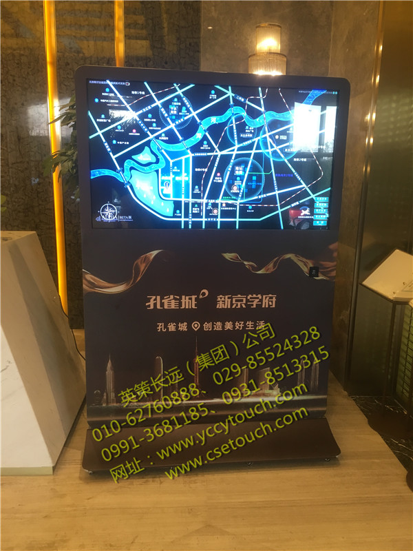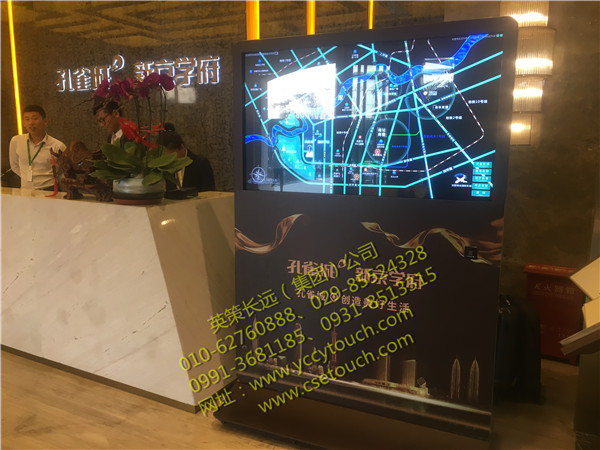 圖為我英策公司為沈陽孔雀城·新京學府安裝了1000-55寸落地式大尺寸觸摸查詢機。